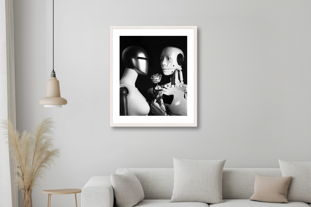 Put simply, an AI is just a programmed algorithm that performs certain tasks. An AI has no consciousness of its own and shows no understanding. The question of the relationship between AI and love is actually utopian. Nevertheless, I have dealt with this question artistically.